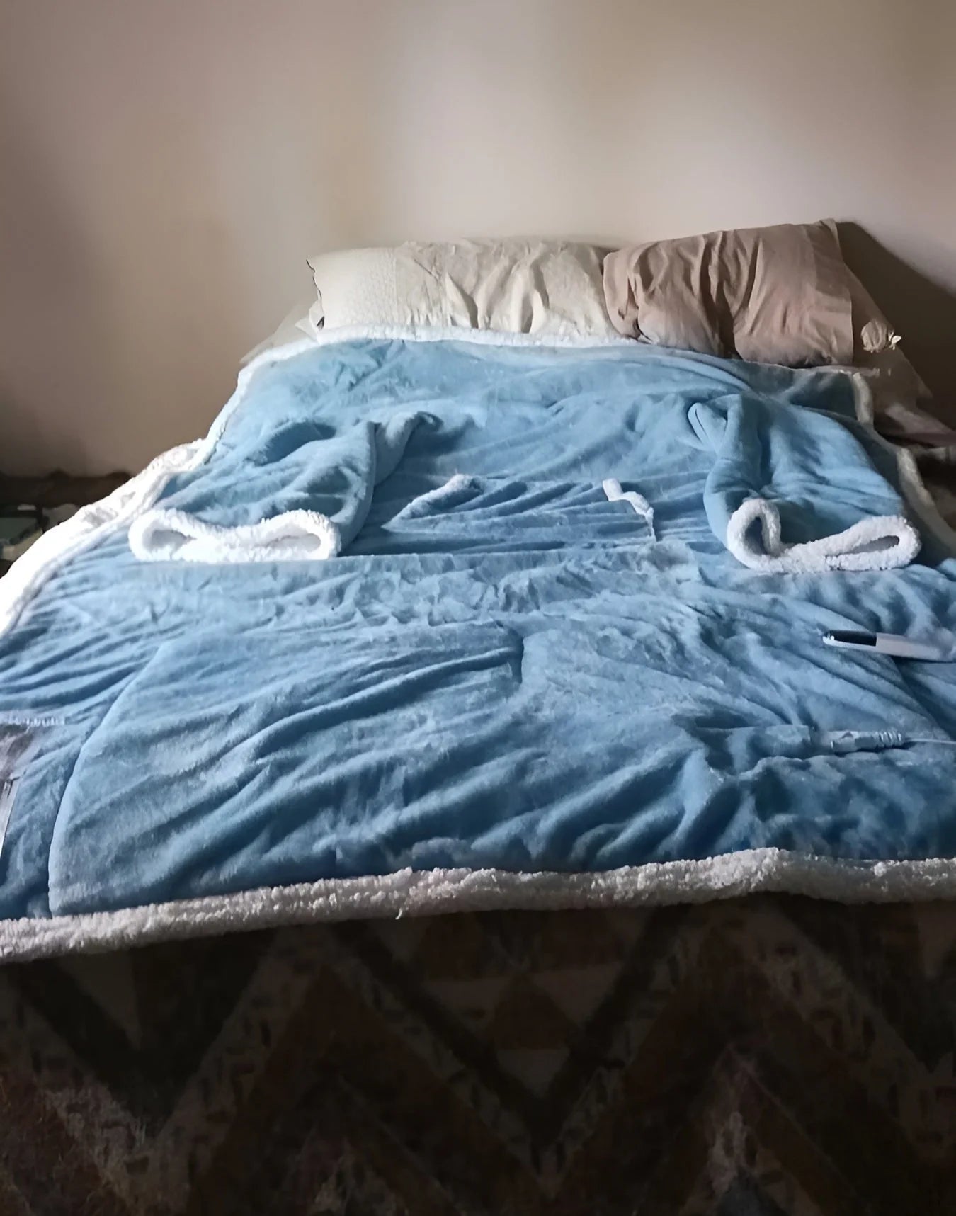This is exactly what CozyFlare™ was designed for. Regular blankets force your arms out and instantly expose your chest and shoulders to cold air. CozyFlare™ wide, comfortable sleeves let you text, scroll TikTok, hold a controller, read a book, or work on your laptop without losing heat. You stay fully wrapped and warm, while still having your hands completely free.